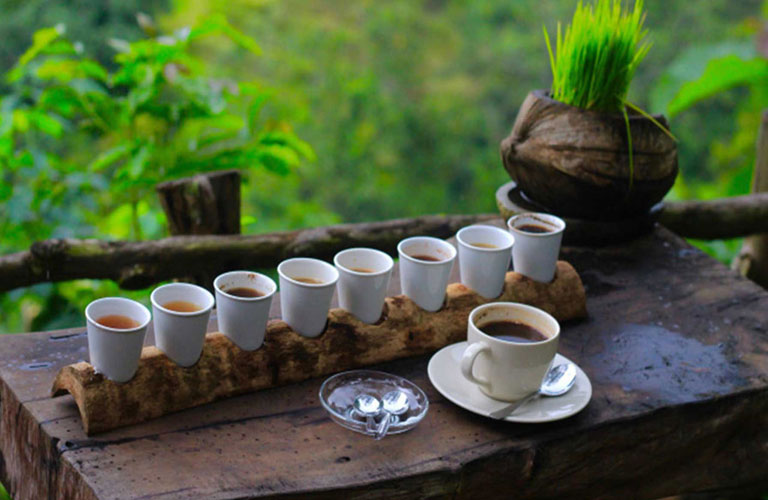 Kami juga berhenti di perkebunan kopi, tempat Anda dapat mencicipi campuran lokal. Ini termasuk Kopi Luwak yang berharga, atau kacang-kacangan yang telah dimakan oleh kucing luwak, yang tidak benar-benar dicerna, kemudian dikeluarkan, dikumpulkan, dibersihkan, dipanggang dan digiling untuk kesenangan minum kita.